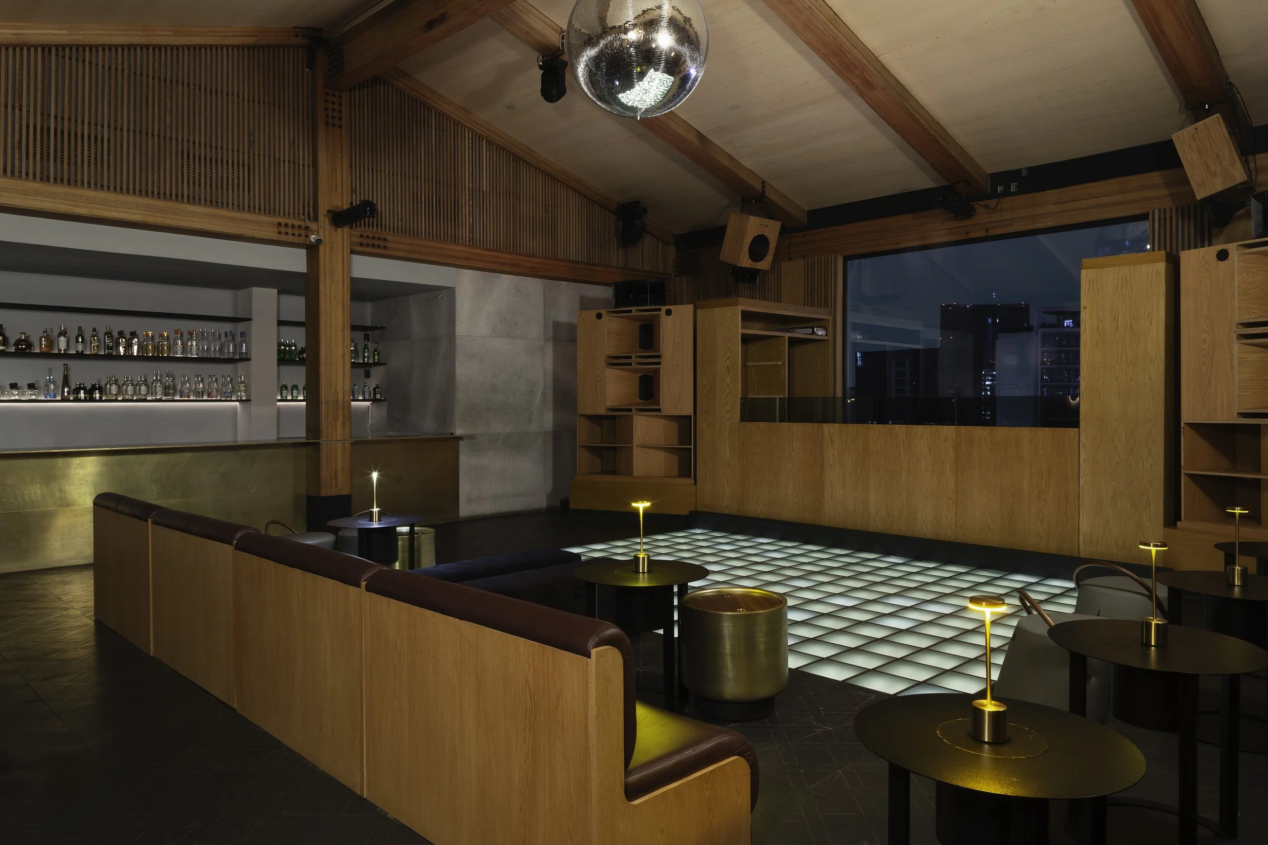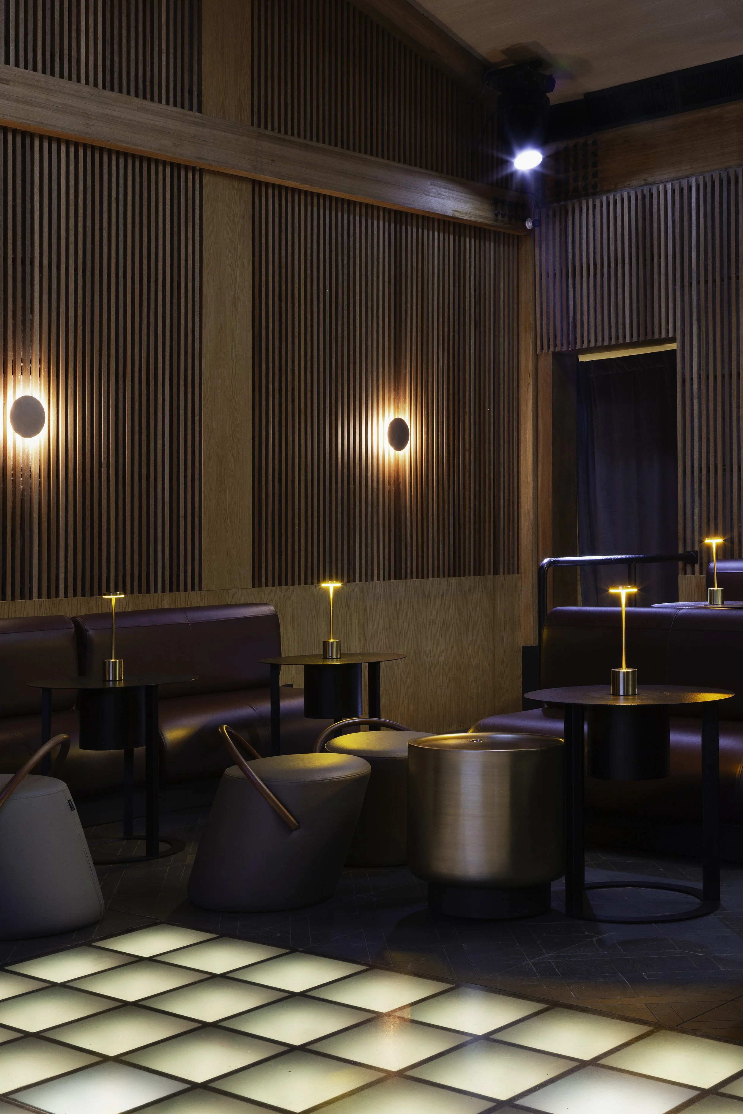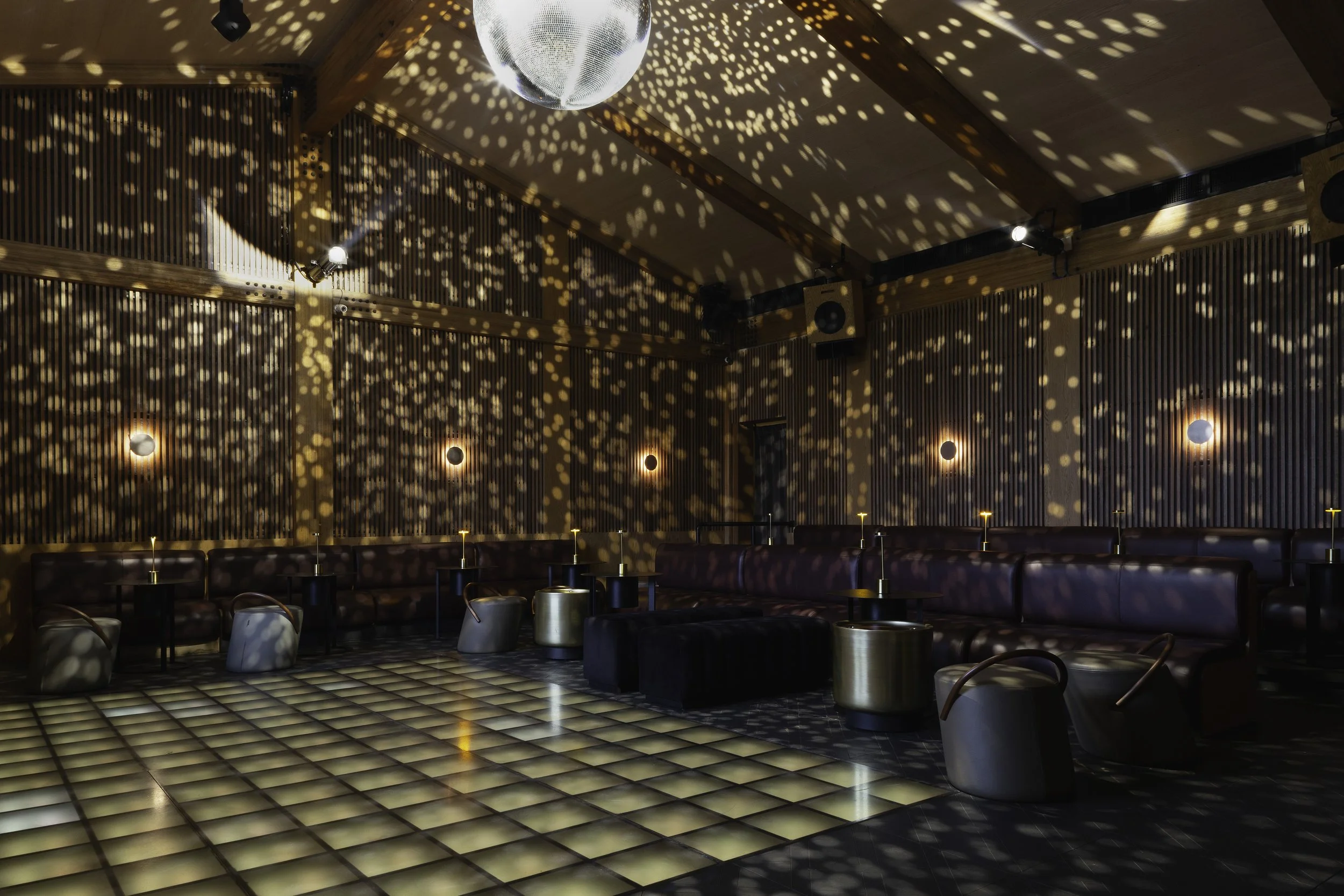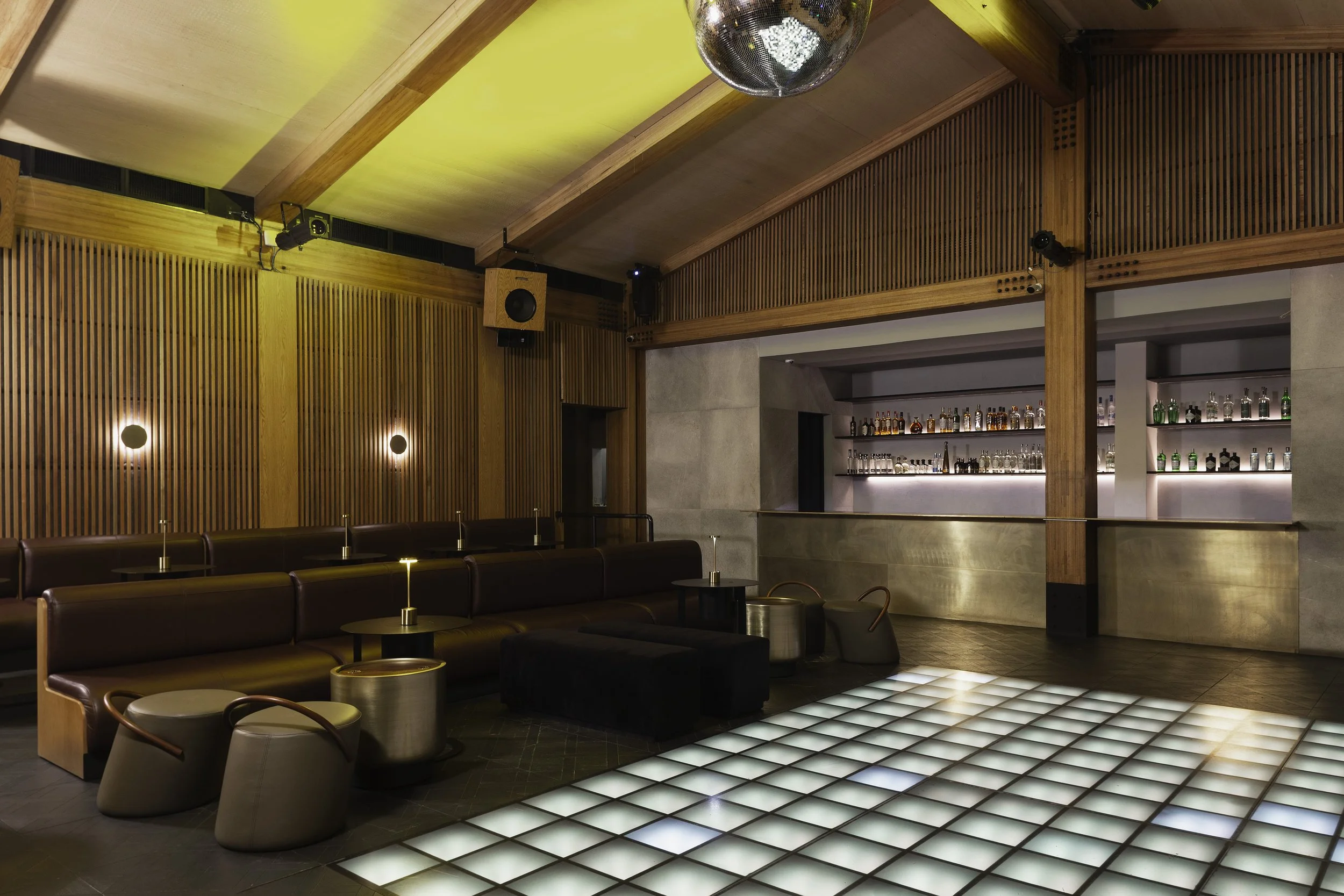 El interiorismo de la discoteca mimi está inspirado en los años 70s