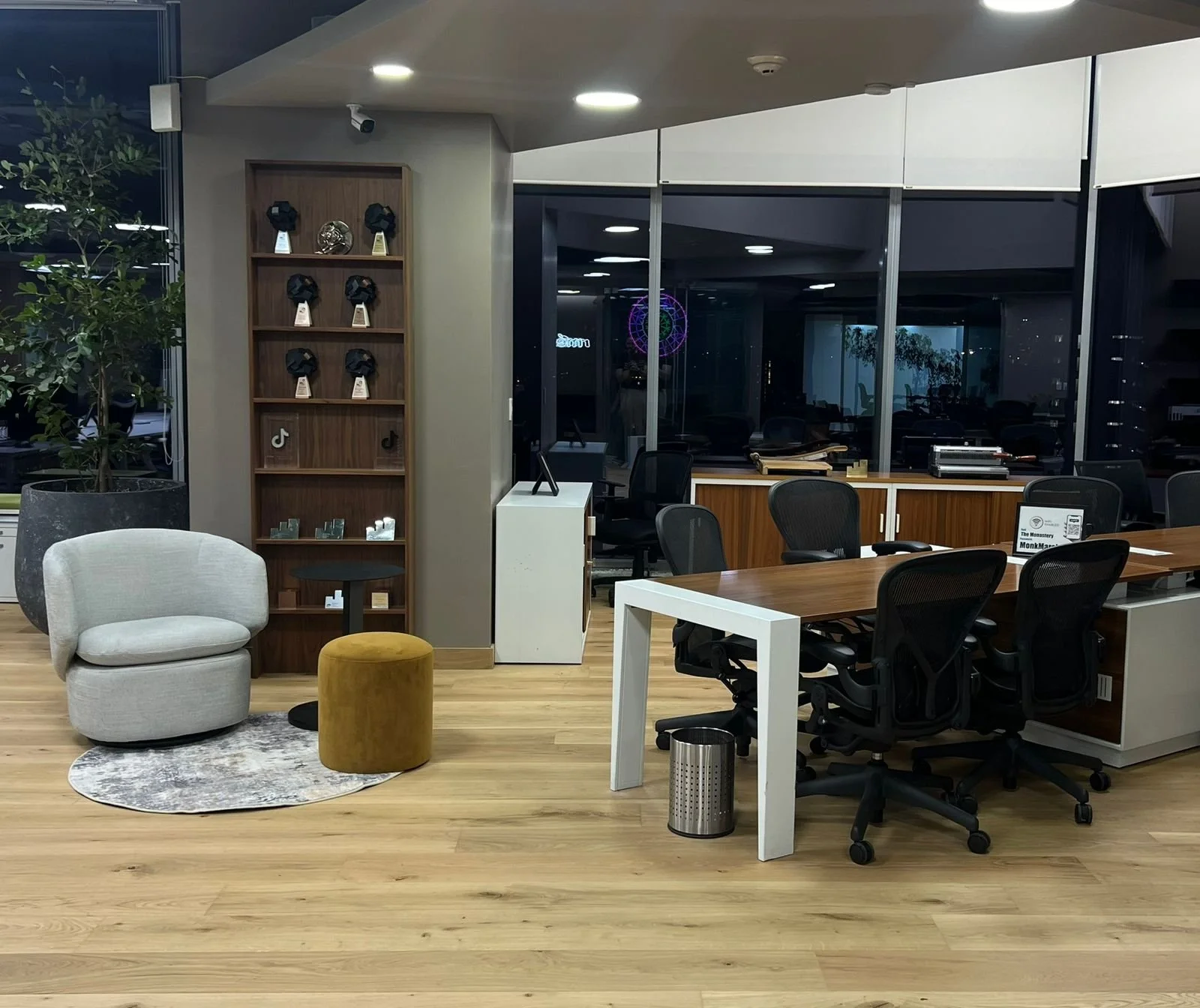 Mantener piezas del mobiliario existente e integrar nuevas, cambiando los acabados para renovar completamente el espacio y sobretodo hacerlo más congruente con la identidad de Media Monks.