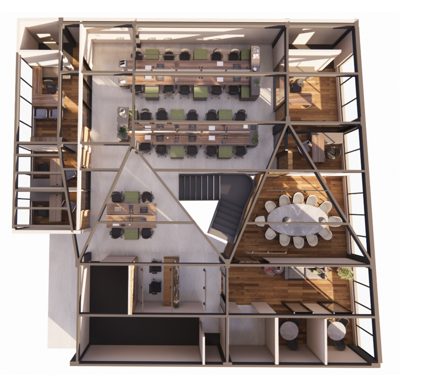 Proyecto en el que se reahibilitó un edificio que funcionaba como estacionamiento en el corporativo de Grupo Witt. Intervenimos desde el diseño de espacio, definición de acabados, el acompañamiento en el proceso de obra, el amueblado hasta la entrega del espacio listo para ser ocupado por los usuarios.